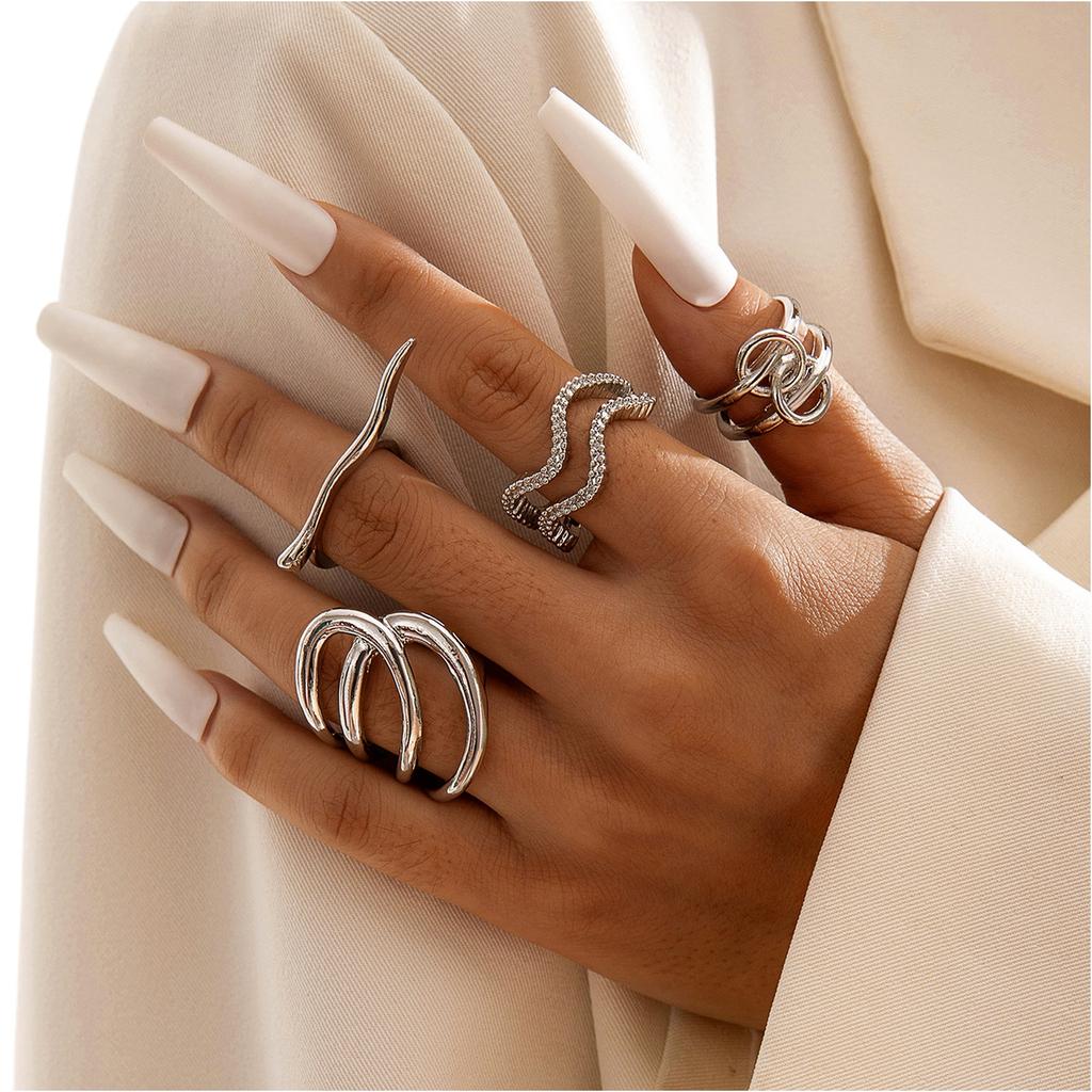 Fashion Women's 4 Piece Ring Set - Ladies Ring Metal Ring Glossy Ring Metal Ring Holiday Gift