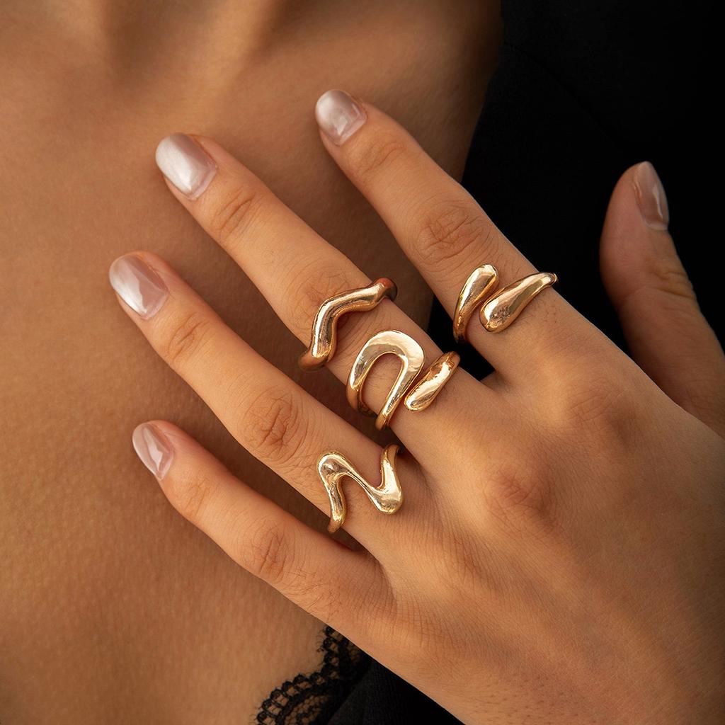 Fashion Women's 4 Piece Ring Set - Ladies Ring Metal Ring Glossy Ring Metal Ring Holiday Gift