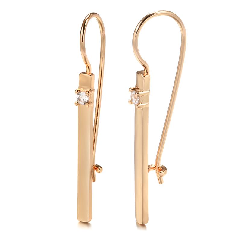 Unusual Rose Gold Drop Earrings For Women Girls Glossy Long Stick Natural Zircon Earrings Bride Wedding Jewelry