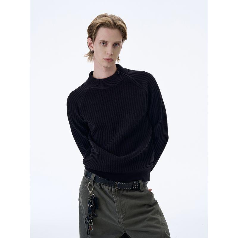 Kisko American Retro Diagonal Zipper Ribbed Knit Top for Men and Women, Simple Casual Half-High Collar Short Top