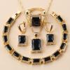 African Gold Plated Bracelet Bangle Ring Trendy Green Zircon Jewelry Sets Necklace Clip Earrings For Women Gift