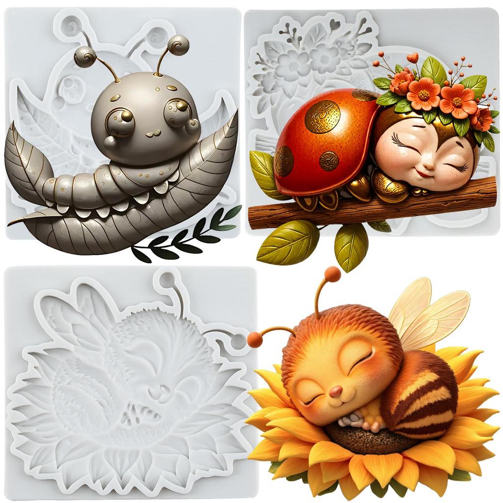 Insect Silicone Mold Worm Bee Ladybug Fondant Molds Cake Decorating Tools Theme Cake Dessert Decorated Chocolate Candy Mold