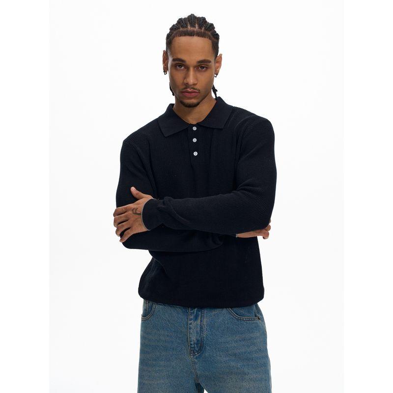 Kisko Simple Retro Polo Collar Basic Knit Long-Sleeve Unisex High-End Cleanfit Top Trendy