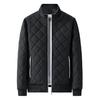 With its solid-color stand-up collar, rhombus embossed texture, and zipper pockets, this padded jacket not only looks versatile but also provides ample storage space for your essentials. The elastic hem ensures a snug fit, while the thick wool inside adds an extra layer of warmth.