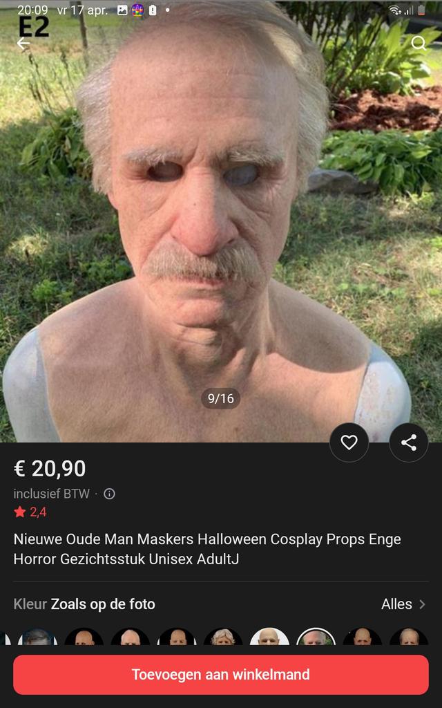 The mask I received has the hair painted on the latex, while the image shows real hair. I find both masks very fake and they don't look like what is depicted. Very disappointed. Only sell what you show you are selling. They are not the same. See the 2 ordered masks! Return costs are for yourself. And because I ordered 2 items, received in 1 shipment, I have to pay separate return costs for each item. And that for something I did not order. These are not the same masks that are depicted!