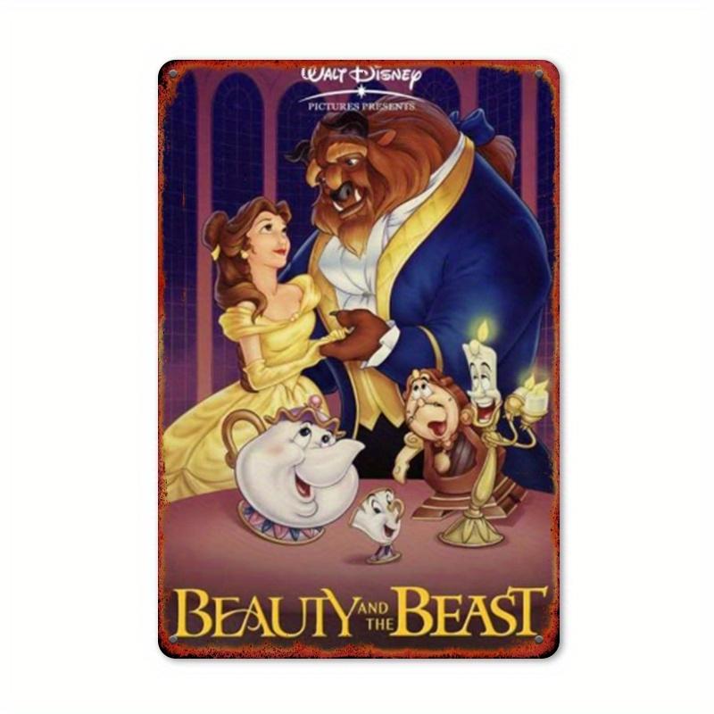 2D Flat - 1pc Beauty and the Beast 12x8 Inch Metal Tin Sign - Vintage Wall Art with Belle, Beast, and Iconic Characters - Perfec