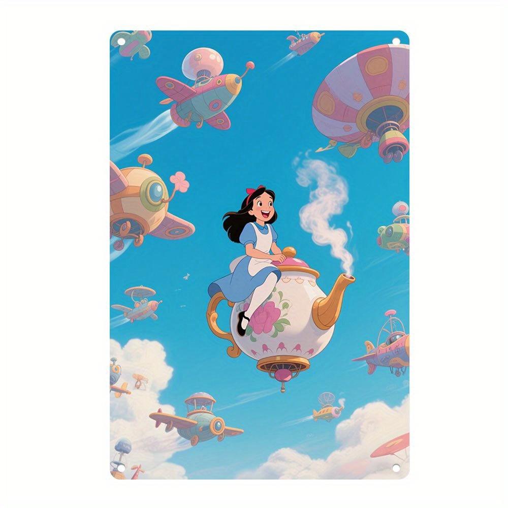 2D Flat - 1pc Disney-Inspired Metal Wall Art Sign - 8x12 Inch Colorful Iron Decor with Whimsical Airplane & Character Design, Du
