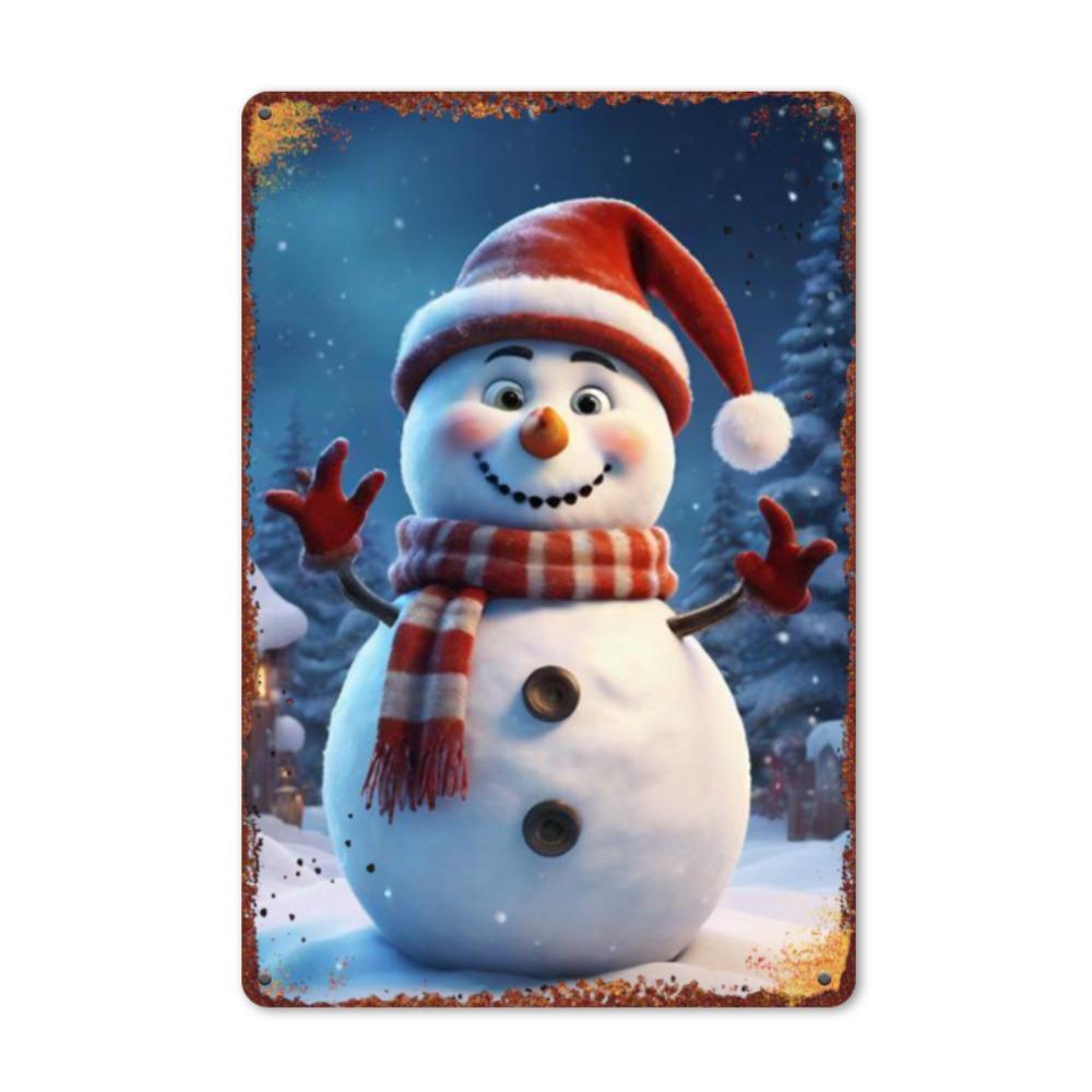 FestiveXmasSnowmanSign 1pc Festive Christmas Snowman Metal Sign - Durable Waterproof, Pre-Drilled for Home/Kitchen