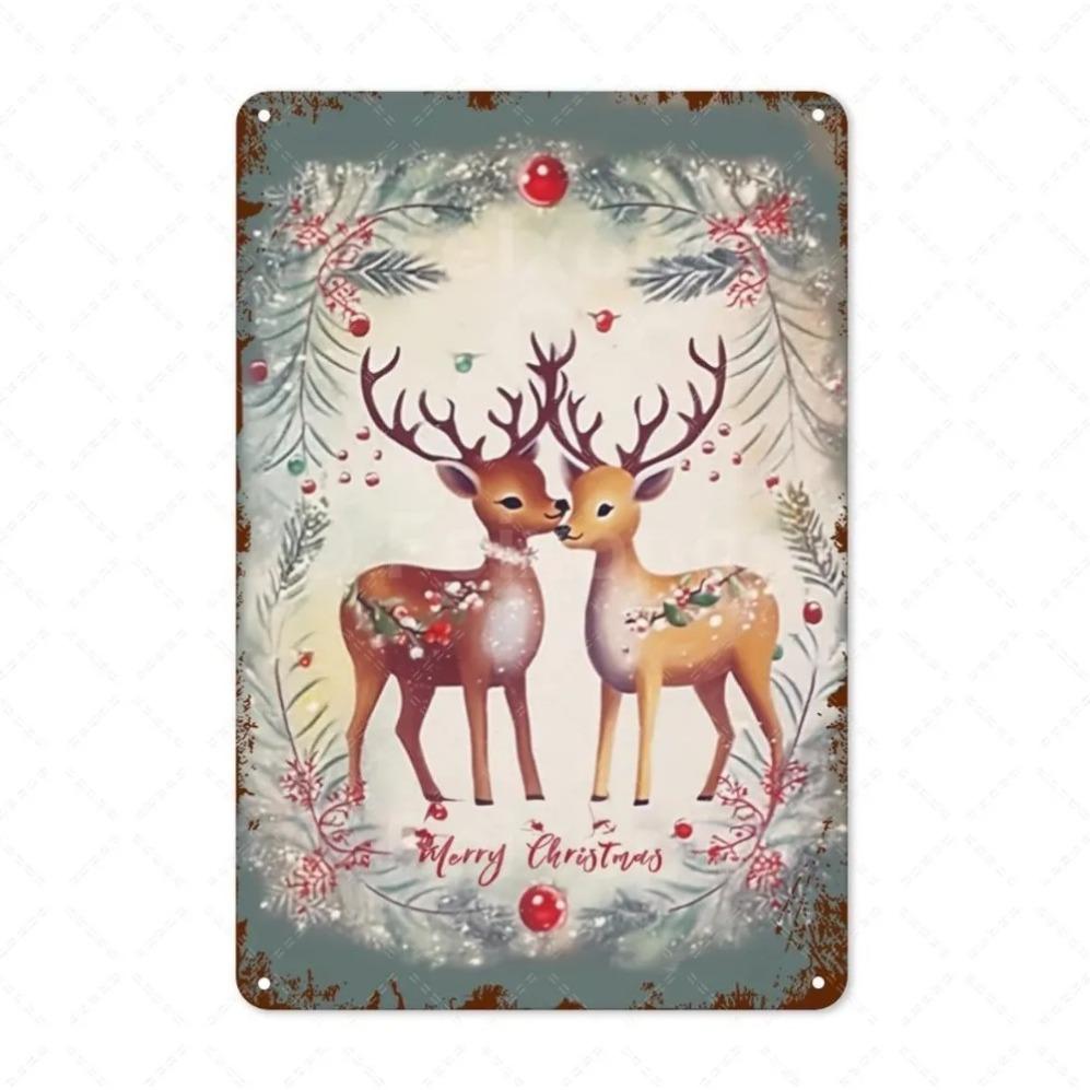 Vintage Merry Christmas Metal Tin Sign - Rustic Wall Art Decor for Home, Bar, and Cafe