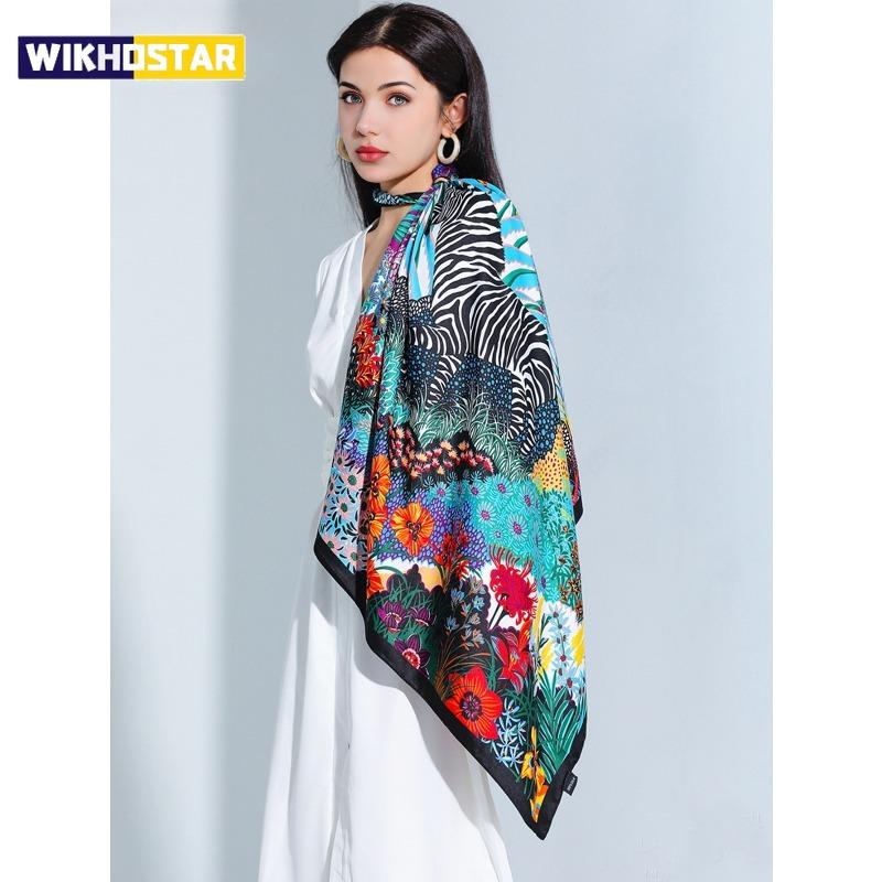 Luxury Brand Square Silk Scarf Women Satin Print Hijab Scarves Muslim Pareo Bandana Female Shawl Wrap Headband Foulard 90*90cm