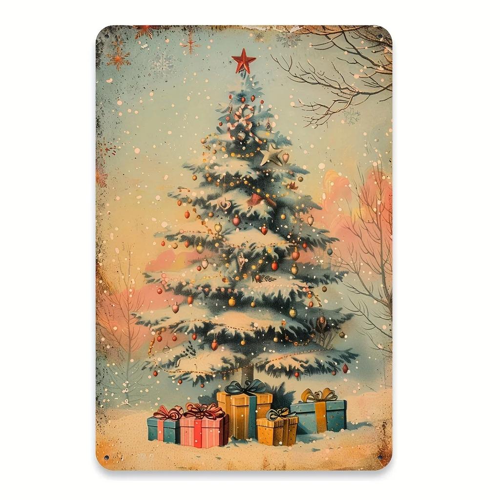 , Rustic Christmas Tree Metal Tin Sign, , Artistic Wall Decor for Gym, Cafe, Garage, Restaurant, Home, Forest Garden, Indoo