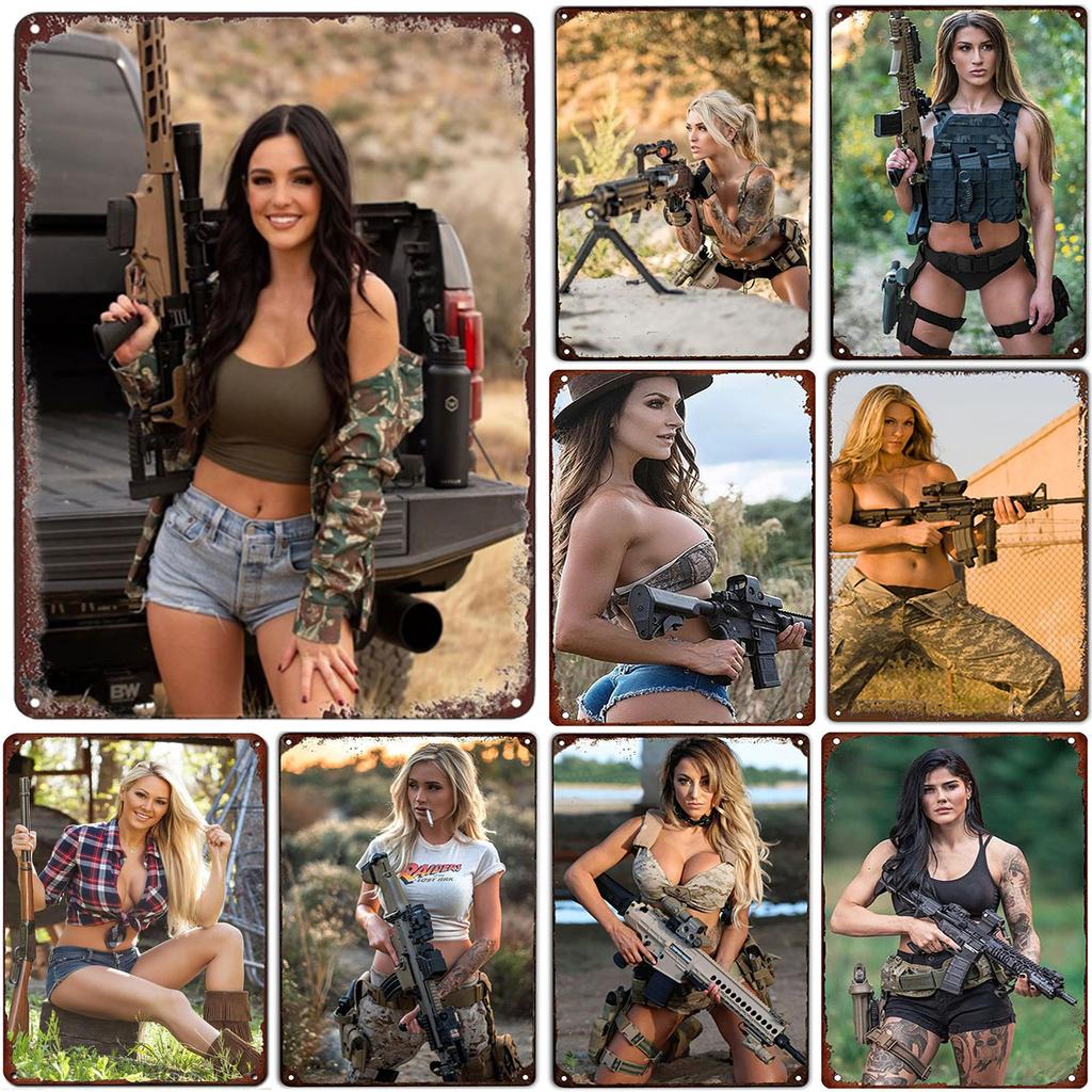 Metal Tin Signs Military Pinup Wall Decoration Plaque Vintage Art Poster Iron Painting for Man Cave Home Cafe Garden Club Bar