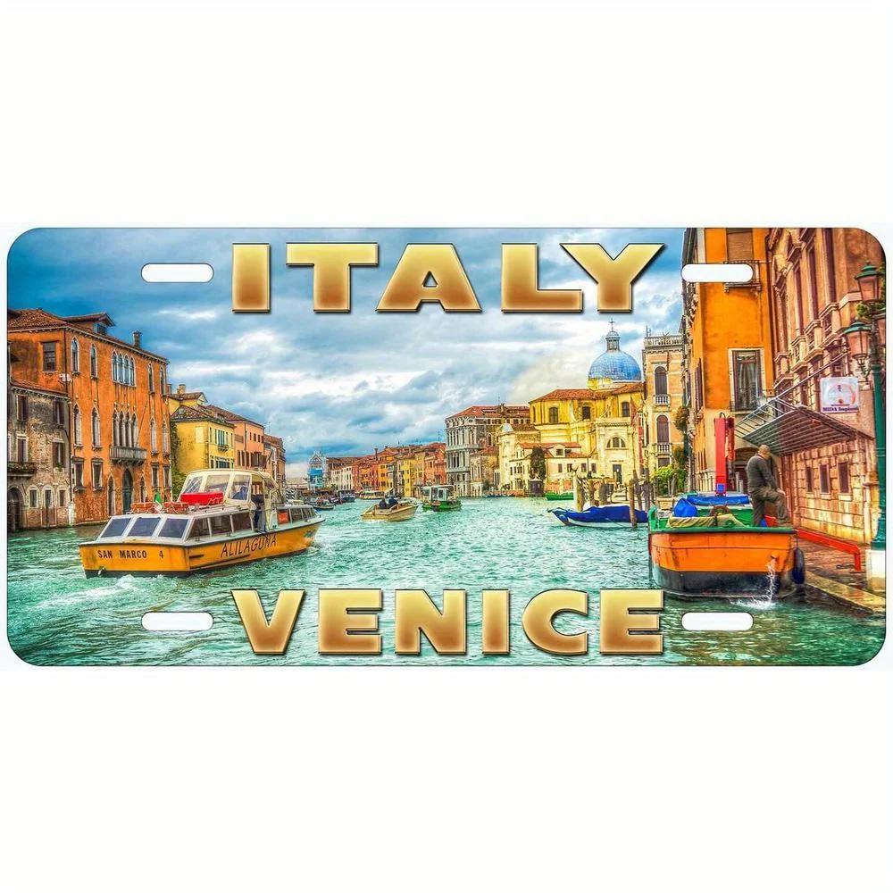 Vintage Venice Grand Canal Italy Metal Wall Art License Plate - Weather-Resistant Aluminum Sign with Pre-Drilled Holes, Clas