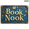 Vintage Rustic Book Nook Metal Wall Sign Floral Gold Letters Home Decor Gift