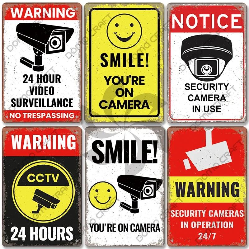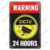 Warning CCTV Tin Signs Metal Plaque Notice Hour Security Camera Vintage Poster Metal Plate Wall Decor for Mall Shop Bar Home
