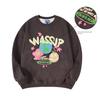 Wassup Heods Foam Stereo Letter Sweatshirt Men's Autumn and Winter Fleece-Lined Versatile Casual Round Neck Top for Couples