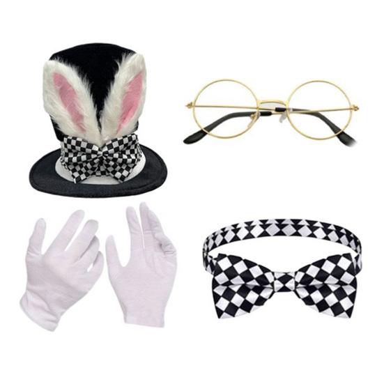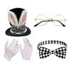 Rabbit Costume Set 4 Piece Bunny Ear Top Hat Glasses Necktie Gloves Set for Halloween Easter Cosplay Accessory