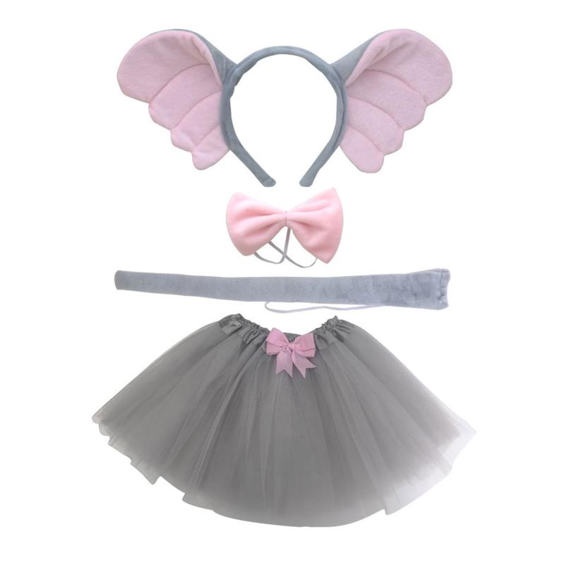 Elephant costume kit,this elephant costume kit elephant pink ears headband, elephant tail, bow tie 1 piece tutu skirt, nice elephant fancy costume accessories to meet your kid's cosplay needs.