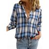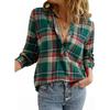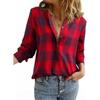 Autumn and Winter Women's New V-neck Plaid Shirt Fashionable Casual Buttoned Shirt