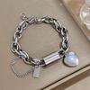 Punk Chunky Gold Color Thick Chain Stainless Steel Bracelets For Women Fashion Design Heart Love Pendant Wrist Jewelry Gift