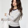 Contrast Color Striped Round Neck Long Sleeve T-Shirt Women's New Autumn Winter Slim Fit Bottoming Top