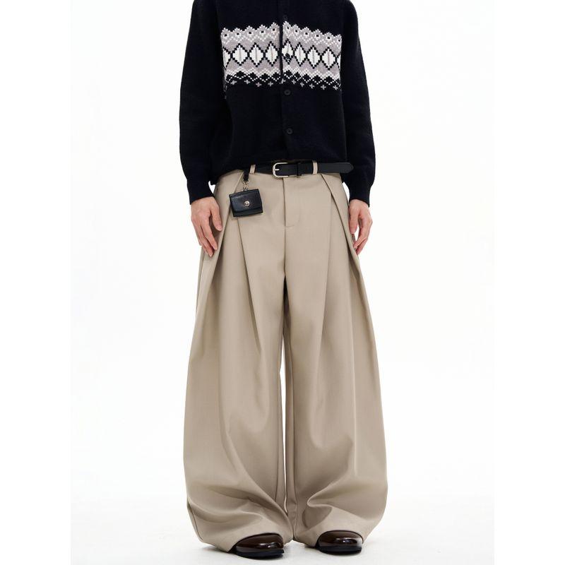 Kisko American-Style Trendy Double-Pleated Wide-Leg Drape Casual Dress Pants for Men and Women, High-End Loose Straight-Leg Commuter Trousers
