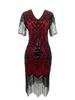 European & American 1920s Vintage Sequin Beaded Tassel Plus Size Evening Party Dress