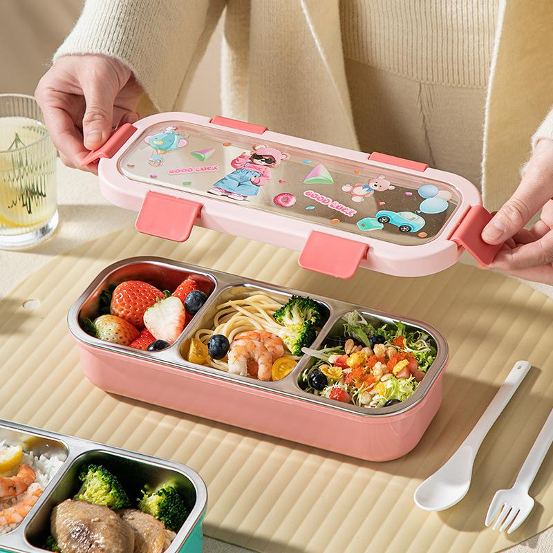 Cartoon Lunch Box Safe Rectangle Shape 304 Stainless Steel Office Workers Compartment Rectangle Container Food Preservation
