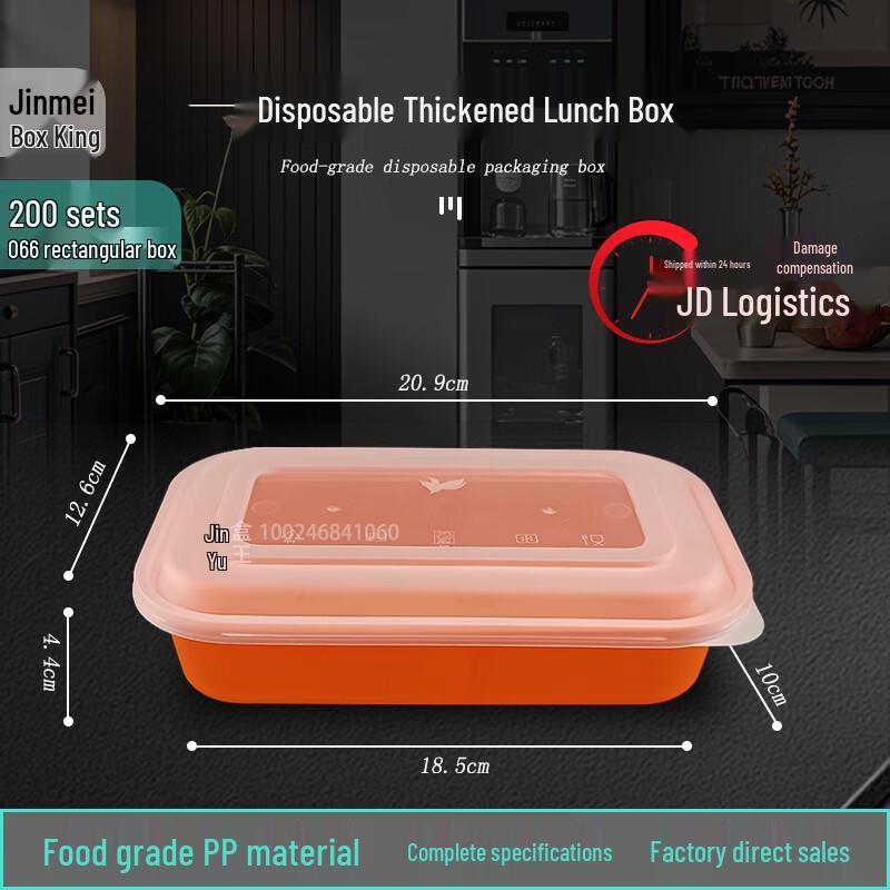 Jimei Hex King 700ml Rectangular Disposable Food Containers with Lids (200 Sets)