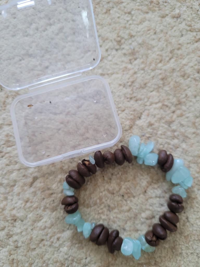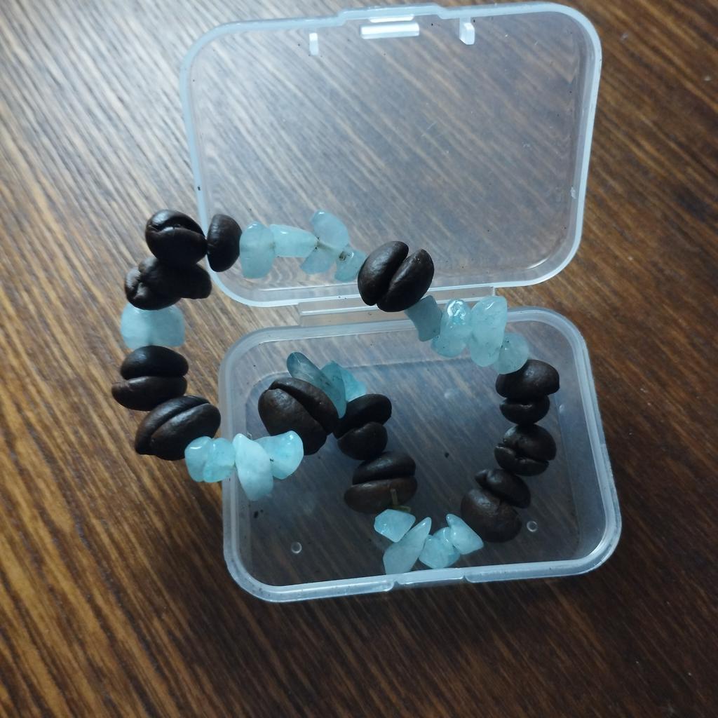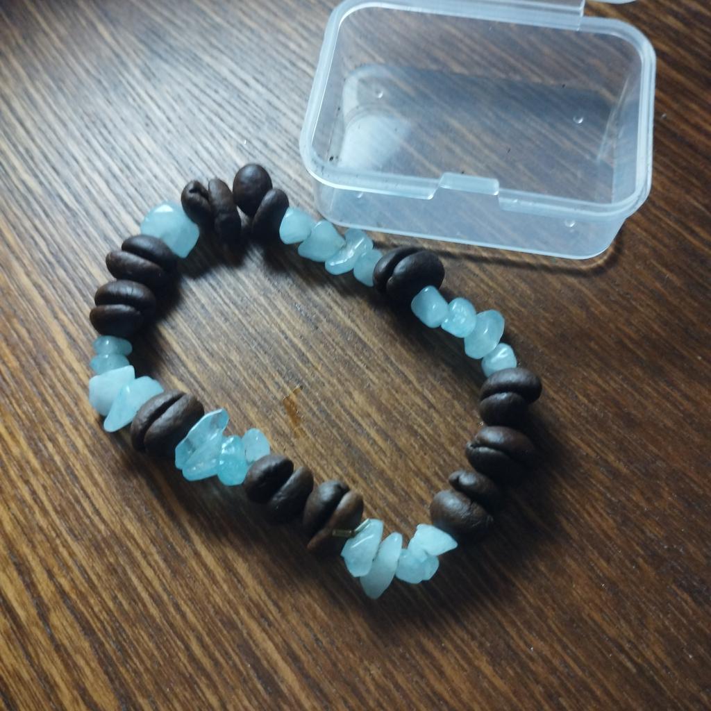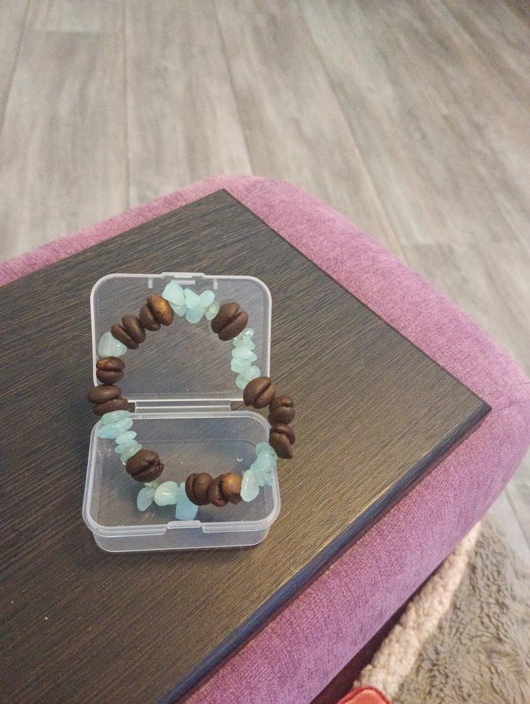 I saw a review that it's a children's bracelet, but it's so loose on my hand it even swings. Although I'm not such a small aunt)) Beautiful, made from stones and coffee beans. Cool!
