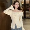 Double Ruffle Edge Flared Sleeve Knitted Sweater Women's One-word Shoulder Backless Tight Elastic Split-ended Sweater