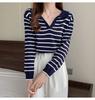 New Autumn Women's New Polo Collar Striped Long-sleeved Knitted Sweater Loose Casual Age Reduction