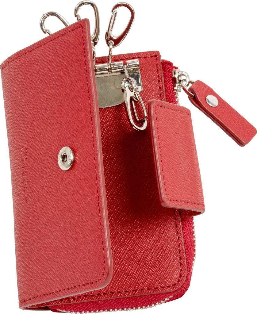 Dom Teporna Key Case with Smart Key, Coin Purse, Leather Wallet, and Key Ring In Saffiano Leather, Red, for Men and Women