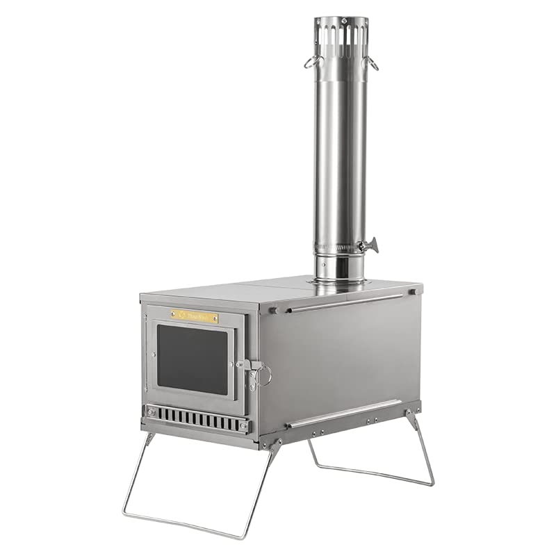 Thous Winds Compact and Lightweight Titanium Wood Stove, Foldable for Camping, Outdoors, Tents, BBQ, Cooking, Fireplace, with Chimney and Storage Bag