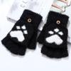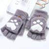 Thicken Women Warm Cat Gloves Girls Cat Claw Paw Plush Mittens Soft Plush Short Fingerless Half Finger Winter Gloves