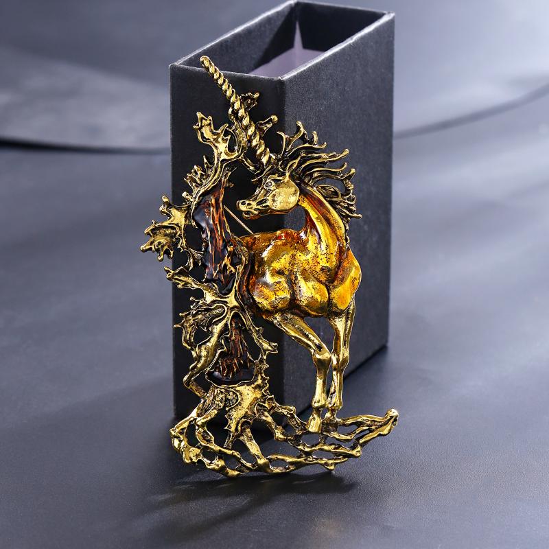 Vintage Unicorn Brooch For Women Men Retro Fairy Horse Animal Lapel Pin Year Gifts