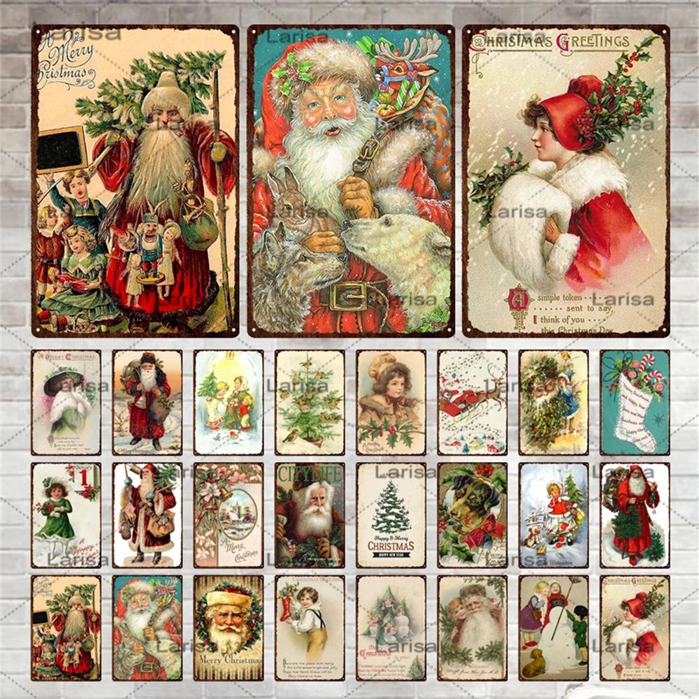 Festival Christmas Santa Claus Tin Sign Vintage Metal Poster Snowman Kitchen Home Bedroom Wall Art Decor Tinplate Signs Plaques