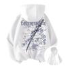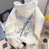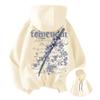 Cherry Blossom Sword Print Men's Hooded Top Autumn and Winter Velvet Thickened Loose Couple High Street Sweatshirt