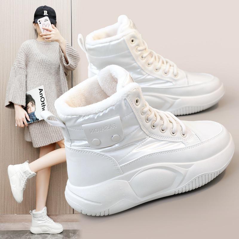 New Winter Velvet Cotton Shoes Wedge Heel Warm High-top Thick Sole Side Zipper Student Height-increasing Women's Shoes
