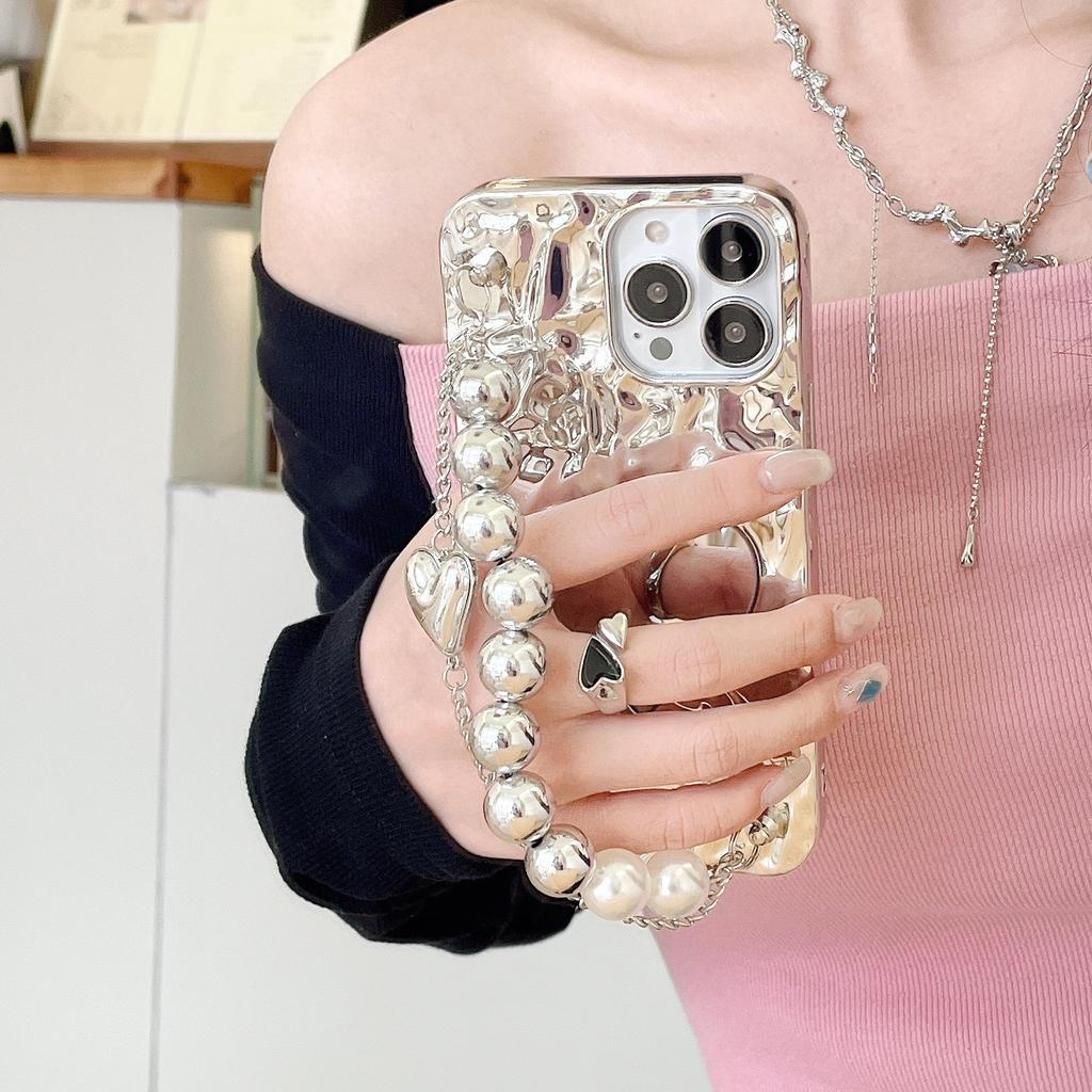 Color: xym Wrinkled Heart Mirror Electroplated Silver Heart Chain
