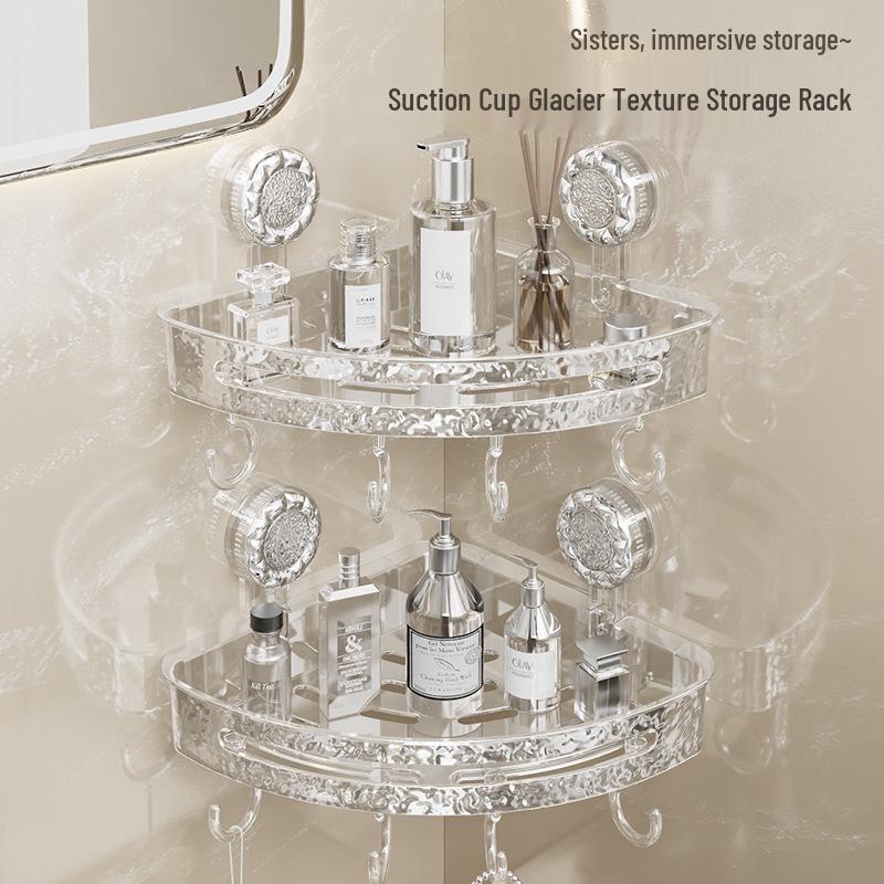 Corrugated Suction Cup Bathroom Triangle Shelf - Punch-Free Wall-Mounted Storage Rack