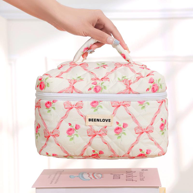 Quilted Court Style Large Capacity Portable Makeup & Toiletry Bag