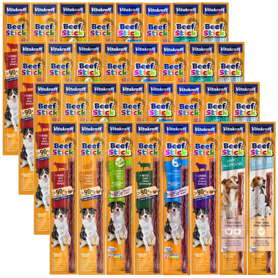 Przysmak dla psa VITAKRAFT BEEF STICK mix smaków 32x12g⭐ 4x VITAKRAFT BEEF STICK kabanos z wołowiny⭐ 4x VITAKRAFT BEEF STICK kabanos z indyka⭐ 4x VITAKRAFT Beef Stick kabanos z warzyw⭐ 4x VITAKRAFT Beef Sticks kabanos z dziczyzny⭐ 4x VITAKRAFT Beef Stick kabanos z serc wołowych⭐ 4x VITAKRAFT Beef Stick kabanos z jagnięciny⭐ 4x VITAKRAFT BEEF STICK kabanos hypoalergiczny⭐ 4x VITAKRAFT BEEF STICK kabanos low fat