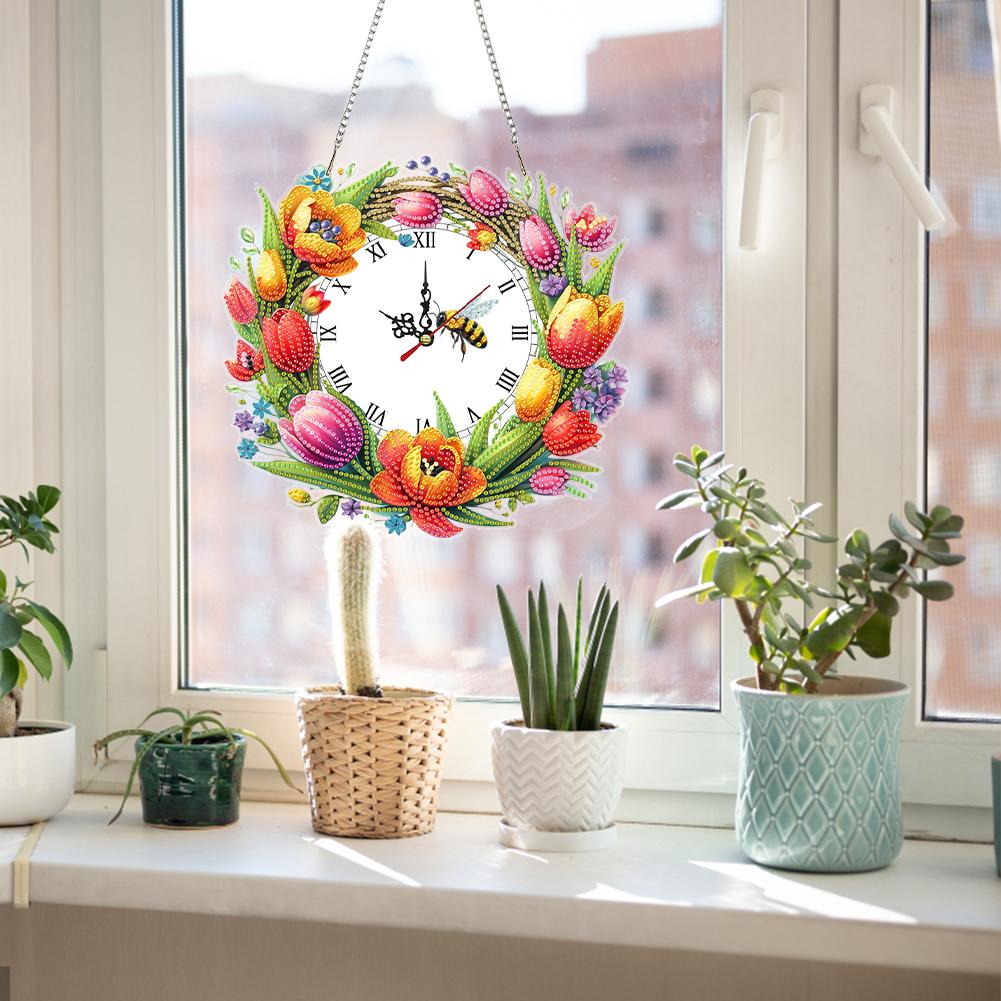 2D Flat DIY Special Shape Rhinestone Diamond Art Clock Wall Pendants Diamond Clock Art Pendant DIY Home Decor Hanging Charm