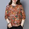 Floral Long-sleeved T-shirt Women's Spring and Autumn Models, Large Size Mother Clothes, Western Style Bottoming Shirt, Literary Fan Top Trend
