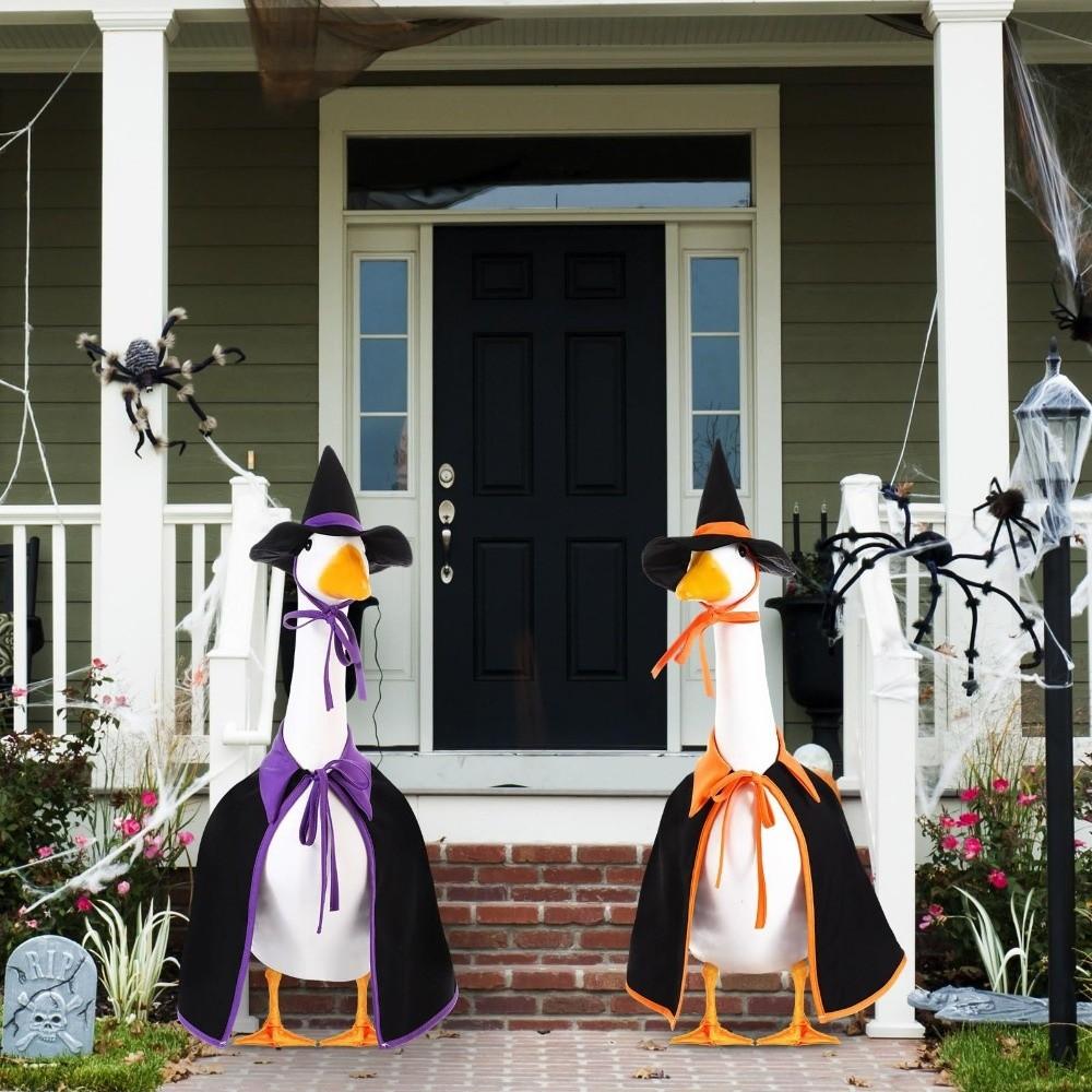 Funny Cloak Halloween Porch Goose Costume Witch Hat 23inch Lawn Goose Outfit Creative Pumpkin Garden Goose Costume Outdoor