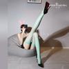 Glossy Seamless Long Tube Stockings for Women, Ultra-thin Shiny Over-the-knee Black Silk Pure Desire Candy Color Thigh-high Soc