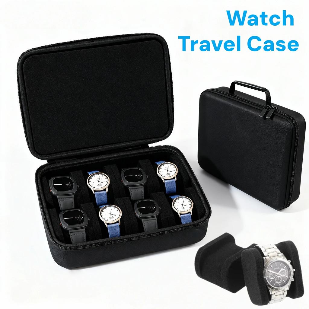 Portable Watch Travel Case, Storage Box Organizer with Sponge Insert for Apple Watch Huawei Samsung Smartwatch Multi Slot Holder