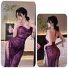 Women Sexy Long Dress Lingerie Lace High Split Cheongsam Elegant Nightdress See Through Secretary Uniform Exotic Dresses