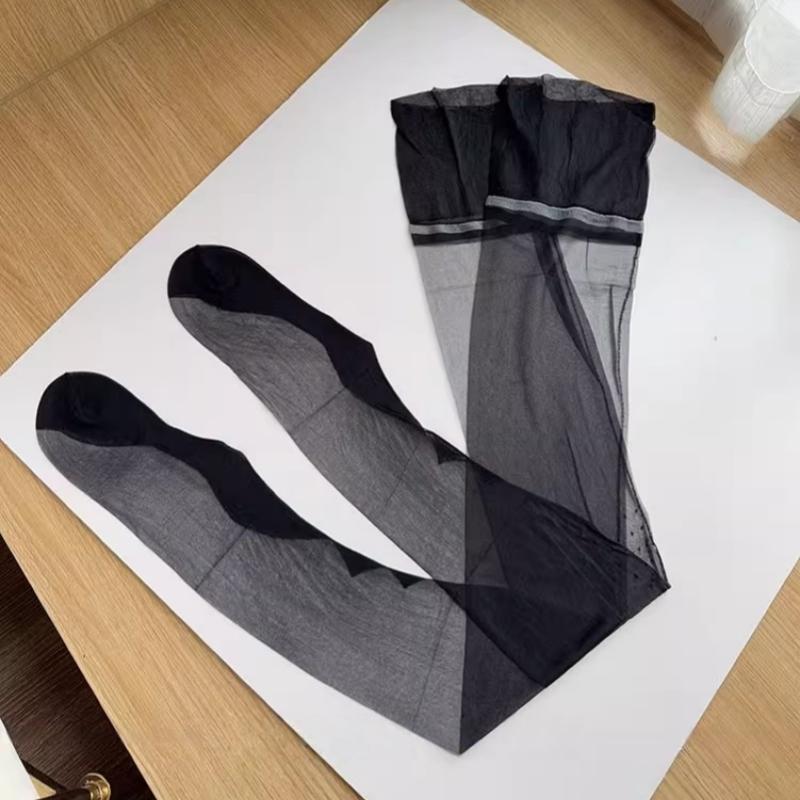 Geometric Cuban Heel Back Seam Thigh High Stockings 5D Foot Shaped Non-elastic Nylon Socks Ultrathin Transparent Underwear